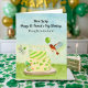 This charming hand-painted watercolor St. Patrick’s Day birthday card features a vanilla birthday cake decorated with green and white shamrocks and carnations, glowing birthday candles, and playful details throughout. A European robin flies overhead carrying a small green balloon a beloved Irish symbol of renewal, hope, and good fortune while a red-eyed tree frog peeks from behind the cake to represent luck and joyful growth. A delicate dragonfly carrying a shamrock completes the scene, symbolizing light, positivity, and change. Designed especially for your daughter-in-law, this keepsake card celebrates a St. Patrick’s Day birthday with meaning, warmth, and a touch of Irish charm.