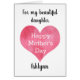 A personalised Mother's Day card for daughter that features a watercolor heart, which says "Happy Mother's Day". The inside card message reads "I hope that today and every day is filled with lots of love, laughter & fun. Happy Mother's Day!" The Mother's Day message can be easily edited. The back of this daughter Mother's Day card features the same heart along with the year, which you can easily edit.