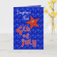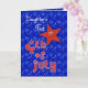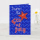 First Fourth of July greeting card for Daughtrt with cute red stars on a blue sky filled with the lights of Independence Day fireworks. Inside text may be personalised using the template provided. Original art and design by Anura Design Studio.