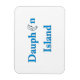A dolphin frolics in the Dauphin Island Sign. Dolphins are often seen along the beaches of Dauphin Island, a barrier island at the mouth of Mobile Bay on the Gulf of Mexico.