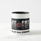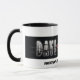 WHITE MUG WITH BLACK HANDLE AND RIM. DAVE EVANS LOGO WITH KING OF ALL BADASSES UNDERNEATH.