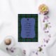 Classic blue, green, red and black Scottish clan Davidson plaid and foil wedding invitation, with a decorative blue text area. A foil Celtic knot heart decorates the top of the text area. Personalise the text for your highland wedding.