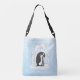 Glaciers and ice surround Annie the paisley emperor penguin as she cuddles up with her dad, Davin, to stay warm in the cold Antarctic snow and ice. This sweet and chilly scene is a great way to bring some cute penguins into your life. This bag is available in multiple sizes and both tote bag and cross body bag styles.