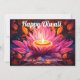 This exquisite Diwali card radiates warmth and celebration. At its centre blooms a majestic lotus in hues of fuchsia, saffron, and violet—cradling a softly glowing candle that symbolises spiritual light and festive joy. The background is an abstract swirl of deep sunset tones and electric purples, lending a dreamy, magical energy to the design.