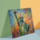 a colourful painting of the Statue of Liberty in the style of famous Dutch painter Vincent van Gogh