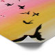 Cherry blossom tree at dawn with birds in silhouette, by Crystal Dunne