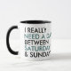 I really need a day between Saturday and Sunday. Working all week for the weekend and it only has two days. Don't you wish it had an extra day to relax and/or party? Text / Font in black and blue/green can be changed by clicking customise it.