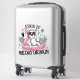 The stick looks amazing. Unfortunately, it would not stick on our suitcase as it was textured. When we found a non-textured (smooth) suitcase, the sticker stuck and looks great. The printing looked awesome.