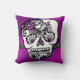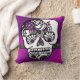 Cute pillow with reversible design. One side boasts beautiful purple and magenta pink ombre pattern behind a classic black and white sugar skull with henna tattoo inspired designs. Back side has grey and black pirate stripes. This pillow is: Full of sparkly fun. Cute. Girly. Versatile.