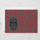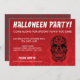 Halloween party invitation with Day of the Dead skull design pattern in red and black with white type. Deep red skulls, one black, on a gray background on the back of the invite. Customize your text to create your very own trendy invite to spread the word about your spooky halloween bash!