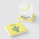 This awesome stone coaster features a digital art image of a cute green cactus covered in dark green spiky prickles. The cactus has goofy eyes and a smile on its face. There is custom text so you can include a name.