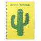 This awesome notebook features a digital art image of a cute green cactus covered in dark green spiky prickles. The cactus has goofy eyes and a smile on its face. There is custom text so you can include the name of the recipient and a message of your choice.