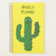 This awesome planner features a digital art image of a cute green cactus covered in dark green spiky prickles. The cactus has goofy eyes and a smile on its face. There is custom text so you can include a name.