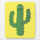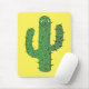 This awesome mousepad features a digital art image of a cute green cactus covered in dark green spiky prickles. The cactus has goofy eyes and a smile on its face.