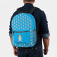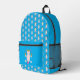 This awesome backpack features a digital art image of a cute axolotl, a Mexican Salamander, wearing a sombrero and shaking maracas. The axolotl is pale pink with bright pink feathery gills and a bright pink tail. It has huge eyes and a smile on its face. The sombrero is yellow with a green cactus in the middle. The cactus is surrounded by chilies and Mexican sunflowers, also called Tithonia. The Maracas are yellow with red and green flowers and wavy lines on them.