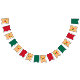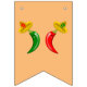 This awesome bunting features a pair of chilis, a red chilli and a green chilli. They both have black eyes and pink mouths. Each Chilli is wearing a sombrero hat that has a skull of the opposite colour to the chilli on it in celebration of the Mexican Day of the Dead festival, Dia De Los Muertos. The sombrero also contains three flowers with alternating red and green petals representing the flag of Mexico.