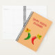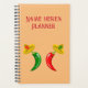 This awesome planner features a pair of chilis, a red chilli and a green chilli. They both have black eyes and pink mouths. Each Chilli is wearing a sombrero hat that has a skull of the opposite colour to the chilli on it in celebration of the Mexican Day of the Dead festival, Dia De Los Muertos. The sombrero also contains three flowers with alternating red and green petals representing the flag of Mexico. There is custom text so you can include a message.