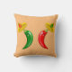 This awesome double sided pillow features a pair of chilis, a red chilli and a green chilli. They both have black eyes and pink mouths. Each Chilli is wearing a sombrero hat that has a skull of the opposite colour to the chilli on it in celebration of the Mexican Day of the Dead festival, Dia De Los Muertos. The sombrero also contains three flowers with alternating red and green petals representing the flag of Mexico. The design is also patterned all over the back so you have 2 looks to choose from.