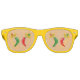 This awesome pair of party shades features a pair of chilis, a red chilli and a green chilli. They both have black eyes and pink mouths. Each Chilli is wearing a sombrero hat that has a skull of the opposite colour to the chilli on it in celebration of the Mexican Day of the Dead festival, Dia De Los Muertos. The sombrero also contains three flowers with alternating red and green petals representing the flag of Mexico.