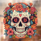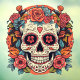 Celebrate the vibrant spirit of Dia de los Muertos with this enchanting design! A joyful Day of the Dead sugar skull adorned with a roses and a bountiful bouquet of colourful flowers. Perfect for Day of the Dead or Halloween parties and beyond. Bring the fiesta to any occasion with this colourful funny memento mori design.