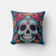 Day of the Dead or Halloween Blue Sugar Skull Cushion