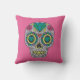 Day of the Dead Roses and Crystal Skull on Pink Cushion