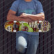 Whether you’re doing grinds on the half-pipe or kickflips in the street, this competition shaped board has supreme pop! Our decks are made of the best quality hard-rock maple and with our one-of-a-kind printing process; you get the best skateboard available in the world.
