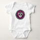 A cute customisable baby t shirt with a black, white, and hot pink Day or the Dead sugar skull printed on it. There is a hot pink damask circle behind the skull. Please check the sizes before ordering.