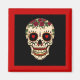 A sugar skull style design for Day of the Dead - Dia De Los Muertos. Skull with hearts and flowers, red roses, on a black and red background.