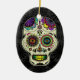 Customisable Day of the Dead / "Dia de los Muertos" ceramic ornament with colourful detailed sugar skull illustration featuring traditional Mexican / Aztec art motifs.
