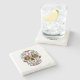The coasters are gorgeous, a quality feel and heavy weight. They look like a precious archeological find. A rustic stone juxtaposed with a modern floral black and white print. I like the way the print goes slightly imperfect on the cut stone edges giving them a kind-of natural beauty.