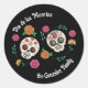 Day of the Dead Sugar Skulls and Flowers Black Classic Round Sticker