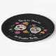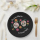 Day of the Dead Sugar Skulls and Flowers Black Paper Plate