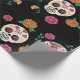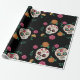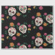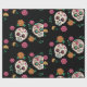 Day of the Dead Sugar Skulls and Flowers Black Wrapping Paper