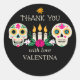 Day of the Dead thank you stickers which you can personalise with your sign off and name(s). Thank You is lettered in bones and the design includes floral sugar skulls, candles and fiesta flowers. Please browse my Dia de los Muertos collection for alternative styles and matching items.