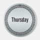 Metallic look circle graphic for daily organisation reminders for home or office. This organising magnet is for Thursday.