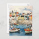 Beautiful water color image of boats in an English coastal harbor.