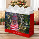 “May your days be merry & bright.” A close-up photo of a happy and cute, rustic log snowman, wrapped in a red and white striped scarf against lighted trees helps you usher in Christmas and New Year. Feel the warmth and joy of the holiday season whenever you use this cute and fun personalised large size gift bag. Matching and coordinating cards, envelopes, stickers, pillows, housewares, jewellery, and other products are also available in my “Christmas Days Be Merry & Bright” store collection. Turns a great present into something even better!
