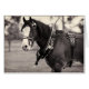 Elegant black and white photograph of a lovely young Clydesdale horse in traditional harness.