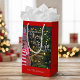 “May your days be merry & bright.” A close-up photo of a happy and cute, rustic log snowman, wrapped in a red and white striped scarf against lighted trees helps you usher in Christmas and New Year. Feel the warmth and joy of the holiday season whenever you use this cute and fun personalised small size gift bag. Matching and coordinating cards, envelopes, stickers, pillows, housewares, jewellery, and other products are also available in my “Christmas Days Be Merry & Bright” store collection. Turns a great present into something even better!