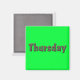 Days of the week - Thursday: a quality magnet labelled as "Thursday" in a style and with a background colour of your choice that can easily be used for example as a memory jogger by sticking your Monday shopping list to the fridge door with it, or used with others in the set for educational use with children in this design by Stronsy. There are other variants in the series including "Months of the Year" and "Numbers"