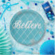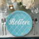 Adorn your home holiday gatherings with our gorgeous and striking Azul Blue and Silver "Believe" Decorative Paper Plates. Our design features beautiful script in silver with the festive word "Believe" complimented by dazzling snow flake designs through out. The backdrop is the most striking and soft blue etched with a silvery white diamond shaped chequered design. We know you'll want the entire collection!