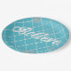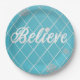 Dazzling Believe Light Blue and Silver Chequered Paper Plate