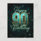 Dazzling Teal Gold 90th Birthday Milestone Postcard