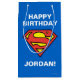 Here comes Superman! The Man of Steel taking a break from the Fortress of Solitude to make a special guest appearance at your birthday party in the guise here of his iconic shield logo. In his home world of Krypton it may mean hope, but to generations of kids worldwide it means cool, good fun! A DC Comics superhero emblem with a birthday greeting that can be customised with your details today!
