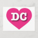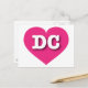 This postcard features a vibrant hot pink heart containing the bold, white, upper case letters DC, the official abbreviation for the District of Columbia. The reverse side of the postcard is blank, awaiting your handwritten sentiments or customised text.