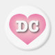 This magnet features a calm, cool pink heart with a white-washed centre containing the bold, white upper case letters DC, the official abbreviation for the District of Columbia.