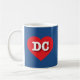 This mug features a vibrant red heart containing the bold, white, upper case letters DC, the official abbreviation for the District of Columbia.