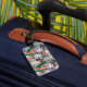 I was happy with the acrylic tag but it came with a thin leather strap to attach the tag to luggage (like a cat collar). I replaced the strap with a metal ring off of a key ring as the leather strap would come undone or break easily as luggage is sometimes handled without much care by airlines. Printing is great. Colours and positioning of the design I put on the tag were perfect. Very pleased.