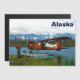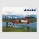 A bush pilot stands near his de Havilland Canada DHC-2 Beaver floatplane on the shore of a lake in the far north; mountains and trees are in the distance. Customisable text reading, "Alaska" also appears. The Beaver has an American registration number; a version with Canadian registration is also available. This image was derived, in part, from a US Fish and Wildlife Service photo.